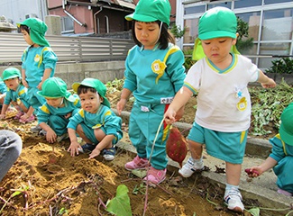 富山藩第2代藩主、前田正甫公 ( まさとしこう ) の菩提寺である大法寺の広大な境内にあり、豊かな緑樹に囲まれ、静かで理想的な教育環境の中で、み仏に守られながら、のびのびと楽しい園生活を送っています。