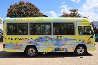 2023.08.26 立正キッズ日記 新しい幼稚園バス! 立正幼稚園に新しい園バスが納車されました! 新学期からはこのバスで子どもたちを送り迎えしたり、遠足へ行ったりします。 絵本の世界をモチーフにしており、とても可愛いデザインになりました。 このバスのデザインは絵本作家として活躍されているRokoさんにお願いして描いていただきました。 何度も打ち合わせを重ねて完成したバスに既に愛着が湧いています、、、 このバスが富山市の街を走るのがとっても楽しみです!