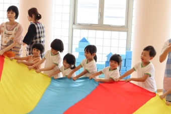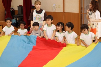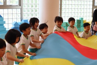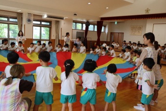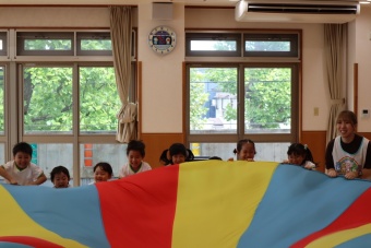 大きなパラバルーンに、子供たちは大はしゃぎしながら、いろいろな技にチャレンジしていましたよ。