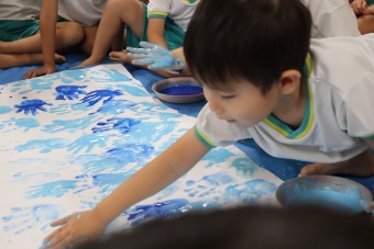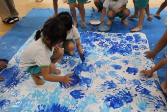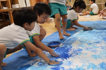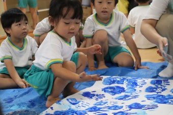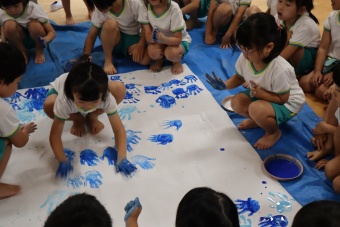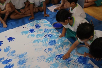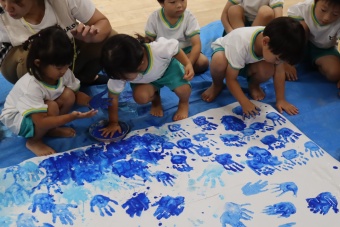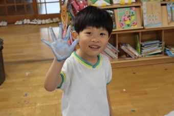 「負けないぞ!」「頑張るぞ!」の思いを込めながら、手形スタンプをして
