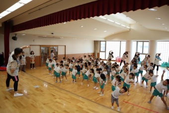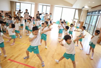 どうするかわからない年少さんに、年長さんや年中さんが優しく「手をあげるんだよ」などと