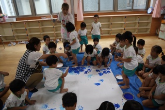 子供たちに説明し、やってみる団と見学する団に分かれて順番に行いました。