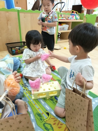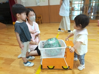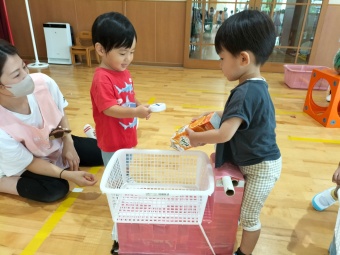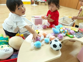 2023.09.27 立正キッズ日記 おかいものごっこ つぼみ・ふたば組では、おかいものごっこがブーム! 初めは紙袋のマイバッグを持って、好きなおもちゃを入れて歩くだけで楽しい様子^^ 先生が店員さんになると、「これくださ〜い」と少しずつ言葉のやり取りをしながら おかいものごっこをの楽しさがわかるようになってきました。 今では先生の真似をして店員さんになる子も出てきました。 カートやお財布、お金、クレジットカードも用意し、ますます盛り上がっています!!