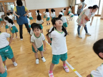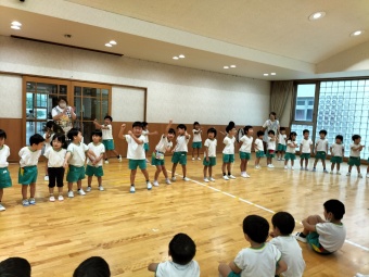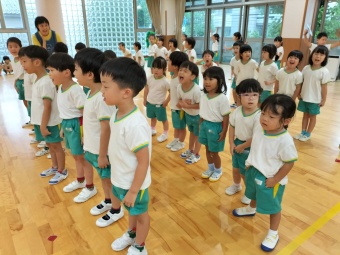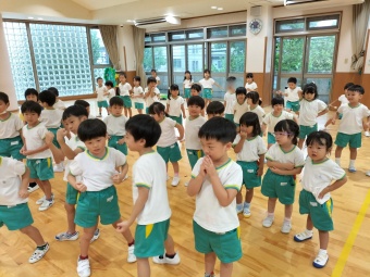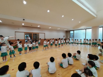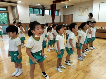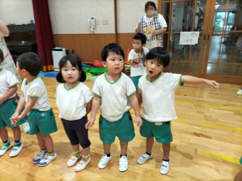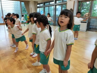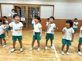それを見たうみ団も、負けじと大声を出してかに団を圧倒します。年長さんのやる気がすごくて、年中・年少もやる気が出ました!