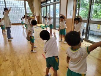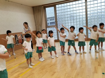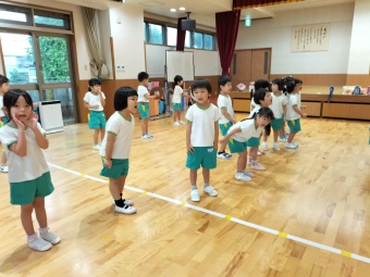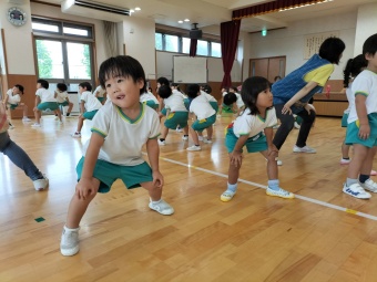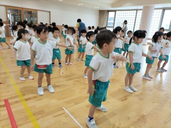 月曜日の予行では、2000年体育館で本番のように動いてみることで、運動会の流れを知ることができました。いつもと違う環境であったため、戸惑う子の姿もありましたが、みんな頑張っていましたよ。