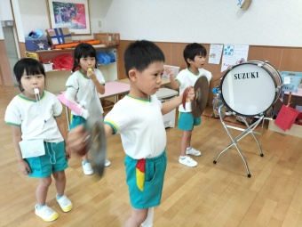 火曜日は、予行でやってみた応援合戦の動画をみんなで見て、どっちの団が大きい声を出せているか、どっちの団の応援が「頑張ろう!」と思えるかを話し合いました。話し合いをして、それぞれの団で応援の工夫をしたり、使う楽器を変えてみたりして、納得できる応援になったようです。