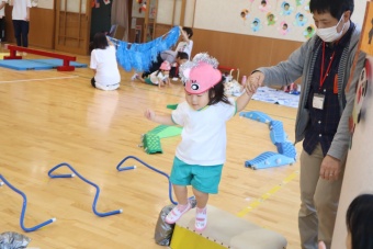 運動会に向けてみんなでホールで体操をしたり、玉入れをしたり、お部屋で一緒に遊んだりしました。