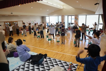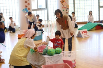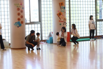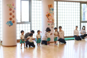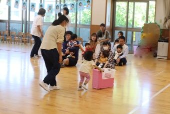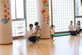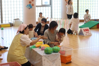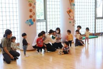 0,1歳児の子どもたちは、お兄さんお姉さんと一緒に遊ぶことができて嬉しそうでした!