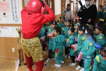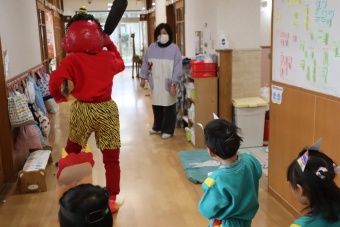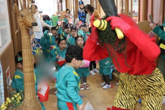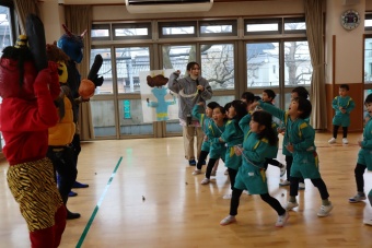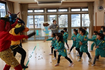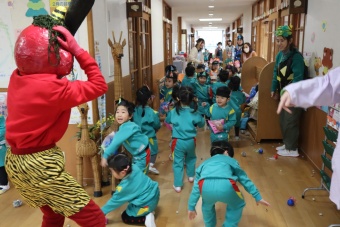 2024.02.07 立正キッズ日記 節分 今年も立正幼稚園に鬼がやってきました! 子どもたちは自分の心のなかにいる鬼を退治するため、気合を入れて豆まきをしました。 「おにはーそと!!」「ふくはーうち!!」 大きな声で鬼を退治することができました!