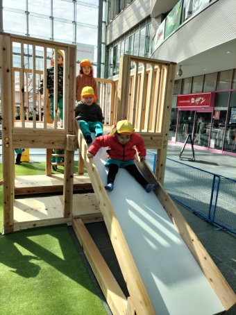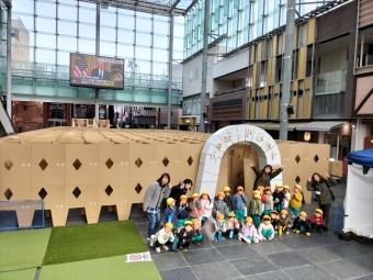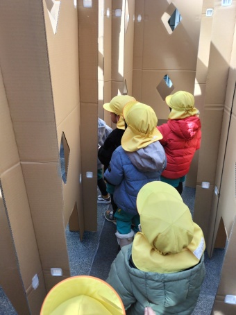 2024.03.01 立正キッズ日記 年少さん 園外保育 年少さんは園外保育で総曲輪に期間限定でできたダンボール迷路に行ってきました。 思っていたよりも迷路は難易度が高く、なかなか難しかったですが、 その分みんなと協力し、ゴールすることができました!