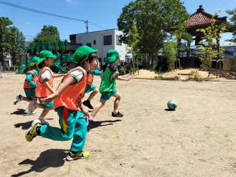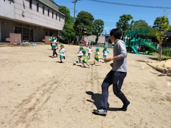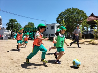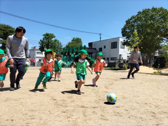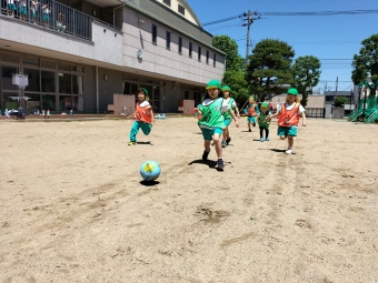 2024.05.16 立正キッズ日記 サッカー教室 カターレ富山サッカースクールのコーチをお呼びして、サッカーを教えてもらいました! 子どもたちは必死になりながらボールを追いかけ、協力してゴールを目指しました。 点を決めた時はみんなでコーチにハイタッチ。とってもかっこよかったよ! 目指せバロンドール!