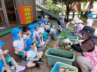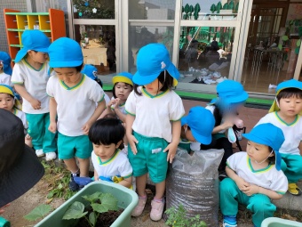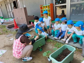 2024.05.17 立正キッズ日記 苗植え 今日幼稚園ではプランターに野菜の苗を植えました ミニトマトや枝豆、きゅうりなど、他にもいろんな種類の野菜を植えました。 これからはみんなで水やりをして観察して育てていきます。 実がなるのが楽しみだね!