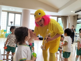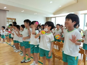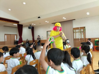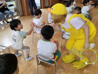 2024.06.27 立正キッズ日記 おたのしみ会 かぐのみ会さん主催のおたのしみ会が行われました! ゲストでぴぺっとさんに来ていただき、 ピアノとトランペットの音に合わせて歌ったり、ダンスをしました。 みんなぴぺっと体操の歌詞や振り付けは完璧だったね! とても楽しい会になりました。 かぐのみ会の皆様、ありがとうございました!