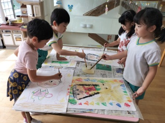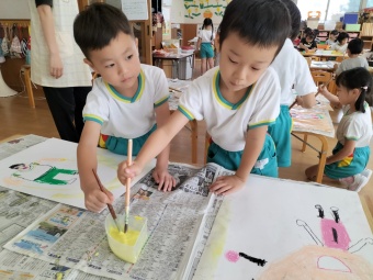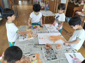 2024.09.30 立正キッズ日記 運動会の思い出 年中組、年長組は一緒に運動会の絵を描きました。 運動会で頑張ったこと、楽しかったこと、印象に残ったことを思い思い描いていました。 年中組さんにもなると色使いがとても鮮やかです。 描いている競技も子どもたちによってそれぞれ違いますね! みんな運動会を心から楽しみ、頑張った気持ちが絵から伝わってきます。