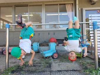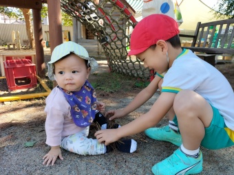 涼しい秋の空の下でお友達と一緒に様々な遊びに挑戦しています^^