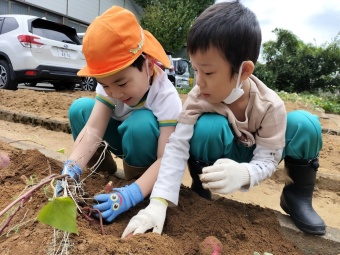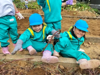立正幼稚園の畑には毎年たくさんの芋がなります。