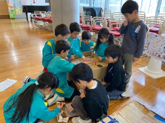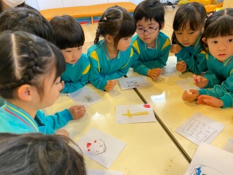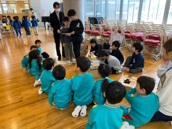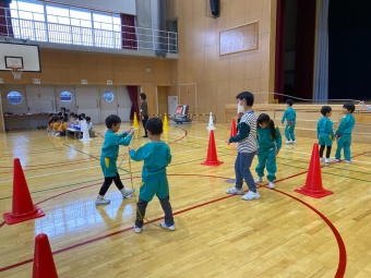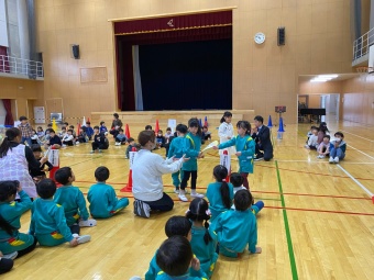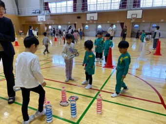 2024.11.28 立正キッズ日記 なかよしフェスティバル 年長組は、中央小学校まで「なかよしフェスティバル」に行ってきました。 どんぐりゴマのコーナーや鍵盤ハーモニカ、縄跳び、輪投げ、フラフープ、かるたなど、 楽しいコーナーがたくさんありました。 優しく遊び方やコツなどを教えてくれるお兄さんお姉さんたちはかっこよかったね! 小学校へ行くのが楽しみになる1日でした!