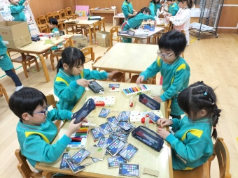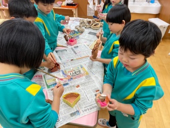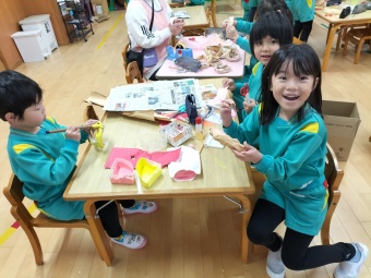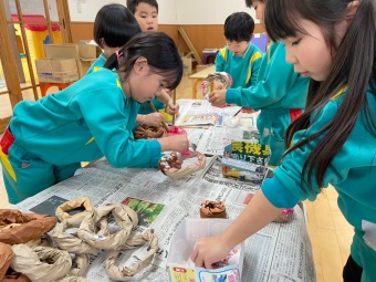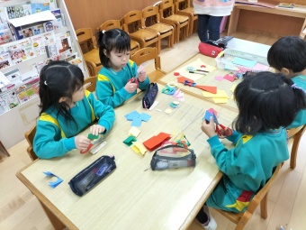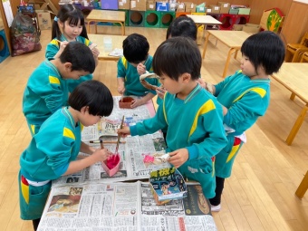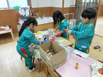 年長組では、1月に行うお店屋さんごっこの準備を進めています。