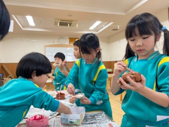 ドーナツ作りのコーナーでは、「チョコチョコチョコー!♪」と口ずさみながらドーナツにチョコをコーティングしている姿も見られました。