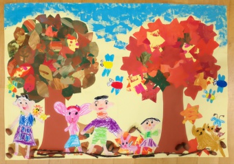 2018.11.13 立正キッズ日記 年中組さん共同作品 年中組さんの作品が北日本新聞の『みら~れ』に掲載されました。 題材は「秋をみーつけた」 絵の具遊びが大好きな子どもたちは、スポンジスタンプや筆、手を使って、葉っぱや空を表現しました。 みんなで力を合わせ完成させた絵を見て「わ~きれい!」と大喜びの子どもたちでした。