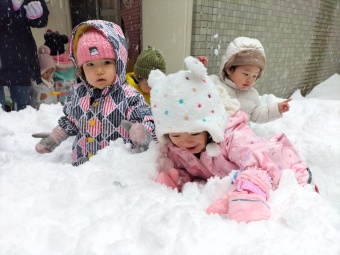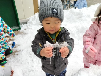 2025.02.12 立正キッズ日記 雪遊び つぼみ組ふたば組 つぼみ組ふたば組さん初お外で雪遊び! つららを見つけたり、雪の冷たさや柔らかさを感じたり、 たくさん積もった雪で色んな遊びをしました! 雪遊び、楽しいね!