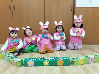 2025.02.18 立正キッズ日記 つぼみ組ふたば組 劇あそび つぼみ組とふたば組は「もりのおいしゃさん」をテーマにうさぎ、さる、ワニになりきってダンスをしたり手遊びをしたりと、子どもたちが日頃から楽しんでいるものを劇遊びに取り入れました。 当日はママとパパを前にして緊張しながらも先生がお名前を呼ぶと手を挙げたり、 「幸せなら手をたたこう」ではみんなで手を叩いたり足踏みをしたりと、可愛らしい姿がたくさん見られました!