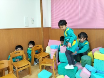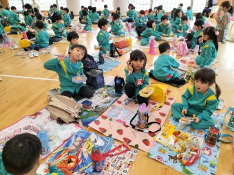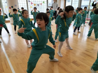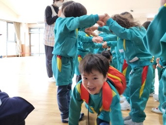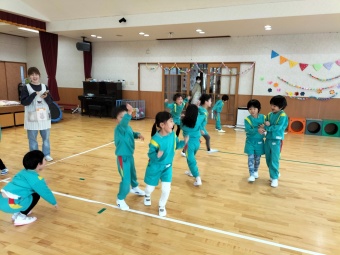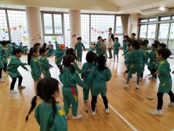 パーティーでは学年問わず楽しめるよう、椅子取りゲーム、ダンス、ドッジボール、幼稚園を広く使ったかくれんぼなど、楽しい遊びが満載!さすが年長さんはどの遊びも上手でしたね・・・。年下のお友達と一緒に協力する姿も見られました^^