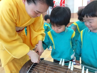 2025.03.11 立正キッズ日記 お琴演奏会 お琴の演奏会が行われました。 普段聞きなれない綺麗な音色、独特な音の温かみを感じることができました。 素敵な演奏にみんなうっとり。 みんなで演奏に合わせてひな祭りの歌を歌も歌いました! 子どもたちもお琴に触れて、とても良い経験になりました^^