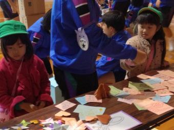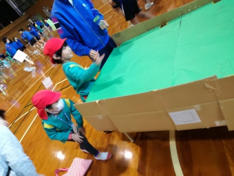 この日のために、三年生のお兄さんお姉さん方は、段ボールや廃材を使い、とても楽しい空間を作って待っていてくださいました。