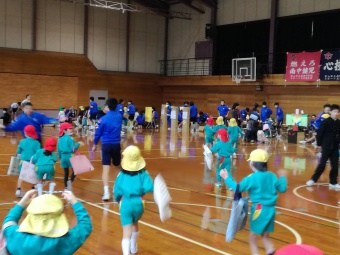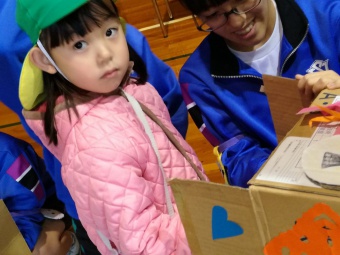 広い体育館に作られていたダイナミックなおもちゃで遊ぶ子供たちは、目を輝かせ、そしてまたお兄さんお姉さん方に優しくされ、とってもうれしそうでした。