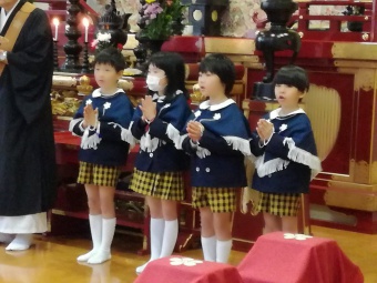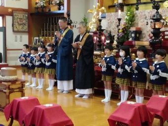 2018.12.07 立正キッズ日記 成道会(じょうどうえ) 本堂にてお参りがありました。 もう随分静かに心を落ち着かせることが出来ています。 ひよこ組さんにとっては初めての本堂デビューです。 小さい手を合わせてお座り出来ました。 年長のお友達が代表でお供えしてくれました。