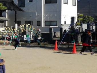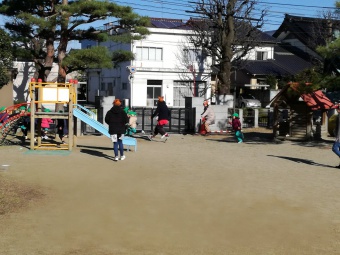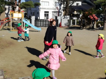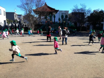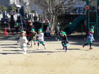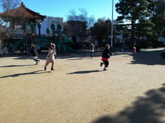 園庭の隅の隅まで逃げ回った子供たちでした。