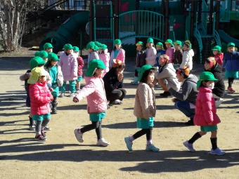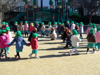 お外では年中組さんが円になって、なにやら楽しそうです。