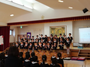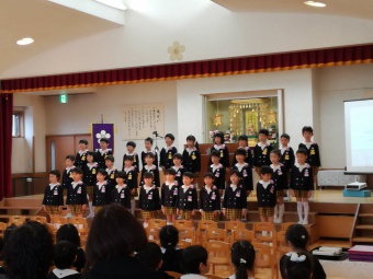 2019.03.11 立正キッズ日記 卒園式予行練習 本日は、卒園式の予行練習を行いました。本番さながらの様子を、ご招待したおじいちゃんおばあちゃん方に見てもらいました。 いつもの練習とは違う緊張感が年長さんにはありましたが、本番の卒園式までは、あと1週間です。1日1日を大切に、そして楽しい園生活を送りましょうね。