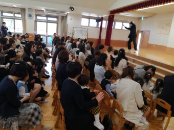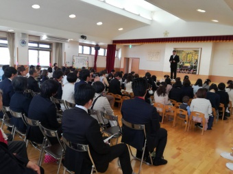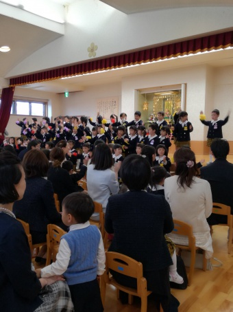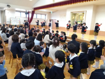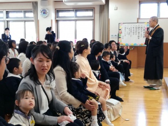 2019.04.09 立正キッズ日記 平成31年度入園式 本日青空のもと、平成31年度の入園式が行われました。 園庭に咲いているしだれ桜も満開です。 式では、園長先生からのお話があり、その後、新年長さんによるダンスと歌の披露がありました。 明日からは新しい環境での生活になります。とまどいや不安も沢山あることとは思いますが、職員一丸となってお子様の成長を支えていきたいと思っていますので、どうぞよろしくお願いいたします。