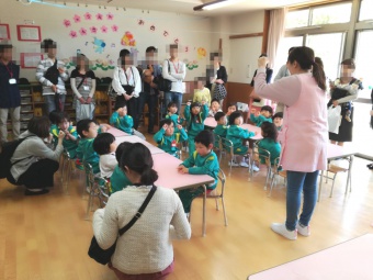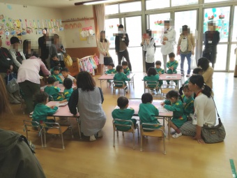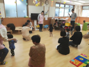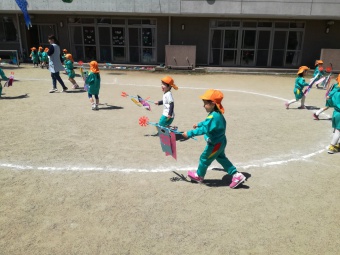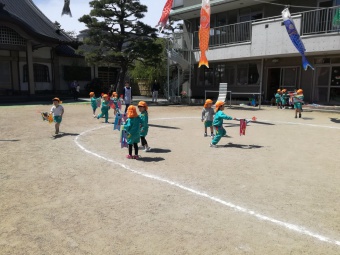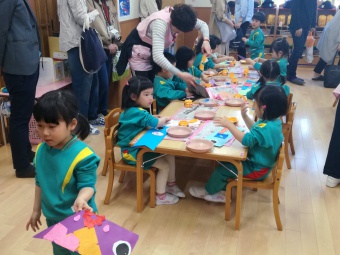 2019.04.20 立正キッズ日記 保育参観と総会 新年度が始まり、初めての保育参観がありました。 各クラスでは、お父さんお母さんに見守られ、ちょっぴり緊張した様子の子供たちでした。 年中さんは、早速作った鯉のぼりを持って園庭に行き、泳がせていましたよ。 こちらは、1歳児さんの鯉のぼりです。 可愛いですね! 参観後は、総会が行われ、新役員の方々の紹介がありました。どうぞ一年よろしくお願いします。