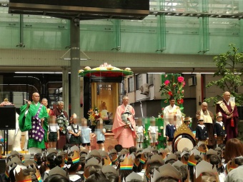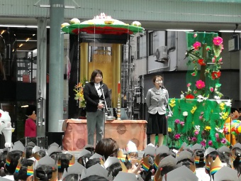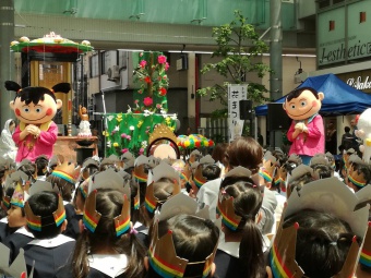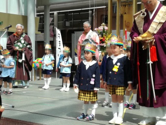 2019.05.09 立正キッズ日記 花まつり この日は、おしゃかさまのお誕生日をお祝いする花まつりがグランドプラザで行われました。 それぞれの園代表のお友達がステージにあがり、お花をまきました。 おしゃかさまのお生まれになったおはなしを聞き、その後はみんなでお歌をうたいながらダンスもしました。 今回は立正幼稚園の先生が参加幼稚園代表でステージにあがりましたよ。急遽お手伝いにあがってくれたお友達もありがとう!