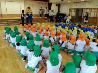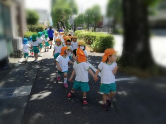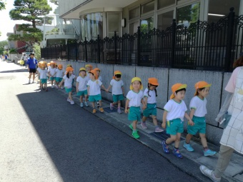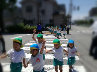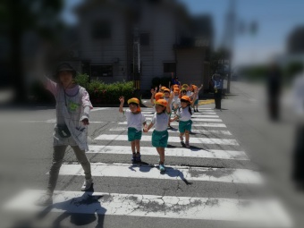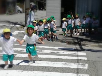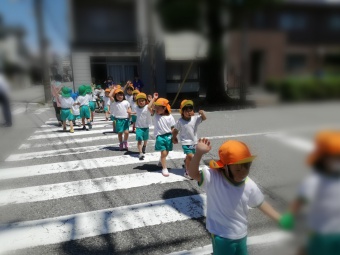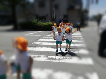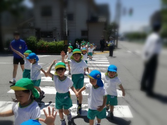 2019.05.29 立正キッズ日記 交通安全教室 今年も立正幼稚園では、交通安全教室が行われました。 警察署の方や地域の方に見守られながら、園の周りを歩く練習をしました。 おうちでも、道路を渡るときや歩くときなど常に気を付けるよう、お声がけをよろしくお願いいたします。
