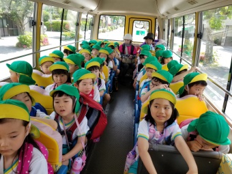 園バスに乗りワクワクで出発した子どもたちですが、始まる前に、少し怖くてドキドキしていたり、目をつぶっている子もちらほら・・・。