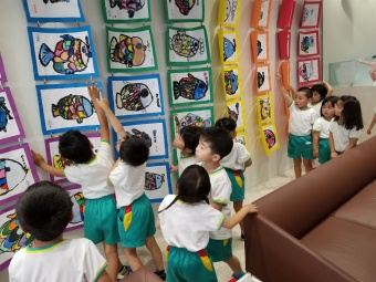 そして帰る途中に北陸銀行で、展示してもらっているにじいろのさかなの絵を見てきました。