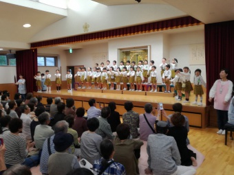 2019.10.12 立正キッズ日記 祖父母参観 今日は子供たちのおじいちゃん、おばあちゃん方だけの為の参観日でした。 登園した後の保育室の様子を見ていただいたり、そのあとはホールにてお歌のプレゼントをしました。 大好きなおじいあちゃん、おばあちゃんに見てもらって子供たちもとてもうれしそうでした。 おじいちゃんもおばちゃんにこにこです。 とってもあたたかい雰囲気での祖父母参観となりました。 雨風の中来ていただき、本当にありがとうございました。