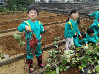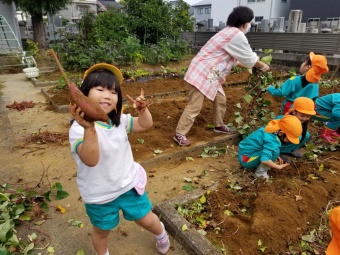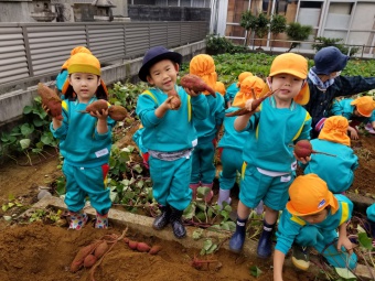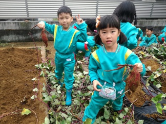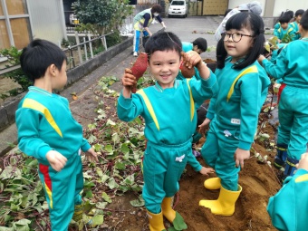 お友達の分まで手伝ってくれる子など、充分幼稚園でのお芋ほりを楽しむことが出来ました。
