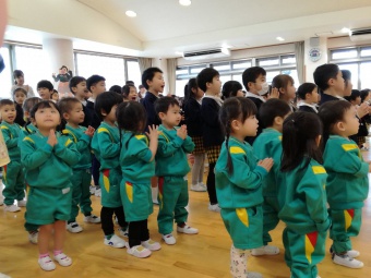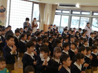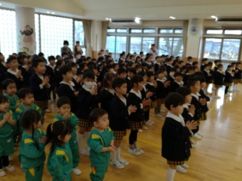 2020.01.08 立正キッズ日記 始業式 あけまして、おめでとうございます!! 始業式を迎えた子供たちの大きく元気な声がホールに響き渡りました。 さあ、今日から三学期です。次の新たな学年にむけての大切な時期となります。職員一同気を引き締めて保育にのぞみ、そして子供たちにはのびのびと楽しく過ごしていけるような環境をめざしていきますので、本年もどうぞよろしくお願いいたします。