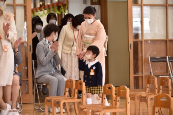 今年は、新型コロナウィルス感染を考慮して、年中さんのお祝いの歌や言葉もビデオ上映になったり、全職員の紹介をしなかったりと縮小させていただきました。