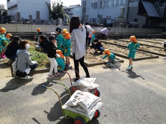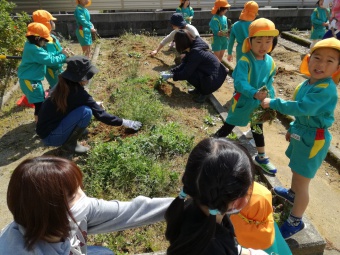 2020.04.03 立正キッズ日記 農園のお手入れ 毎年この春休みを利用しての農園の耕しや草むしりを行いました。 新年長さんを募ってのふれあい活動でしたが、雨が続き順延順延でのやっとの開催になりました。 お手伝いに来てくださった方々ありがとうございました。 きれいに耕し栄養分のたっぷり入った畑で、夏には夏野菜、そして秋にはさつまいもがおいしく実ってくれることを期待したいと思います。