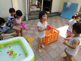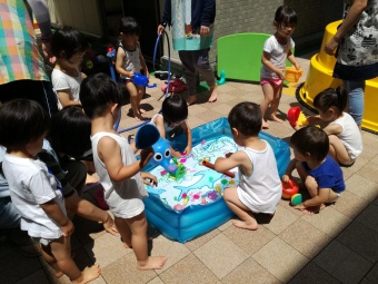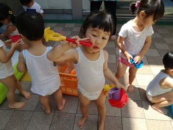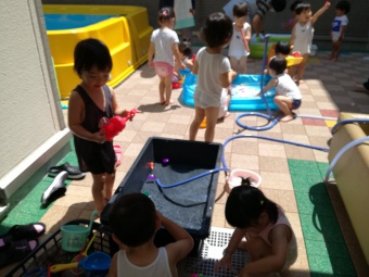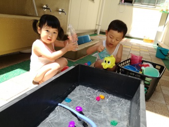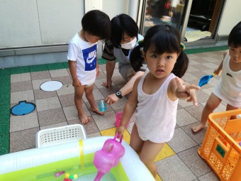 ひよこくみさんの水遊びしているところを、パシャリ!