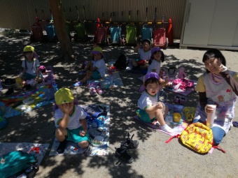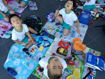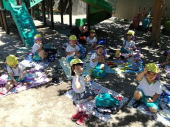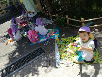 2020.06.17 立正キッズ日記 おいしいお弁当ありがとう この日も園外保育に行き、戻ってきた子供たちは、園内外のそれぞれの場所でお弁当をいただきました。 自慢のお弁当をみな広げて見せてくれます(笑) お父さん、お母さん、おいしいお弁当ありがとう!