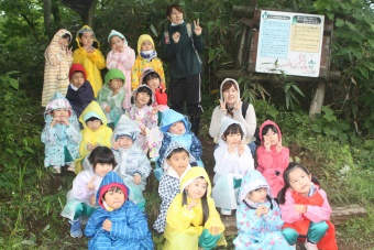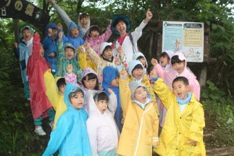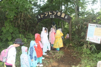 自然の家に到着した子供たちは、入所式で山に自生している植物や動物の話を熱心に聞き、とんとんの森探検へと向かいます。