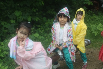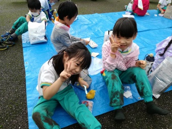 トントンの森の中は、やはり道がぬかるんでおり、歩いて行くうちに子供たちはどんどん泥だらけに・・・。なかなかしたことのない経験に子供たちは大はしゃぎです。