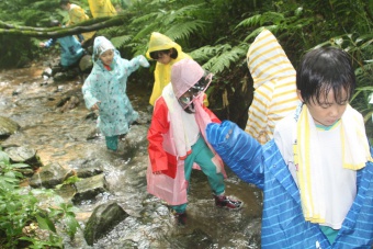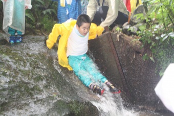 水の感触を楽しみながら石や岩をよけ、なんとかゴールに到着した子供たちの顔はとても晴れやかでした。